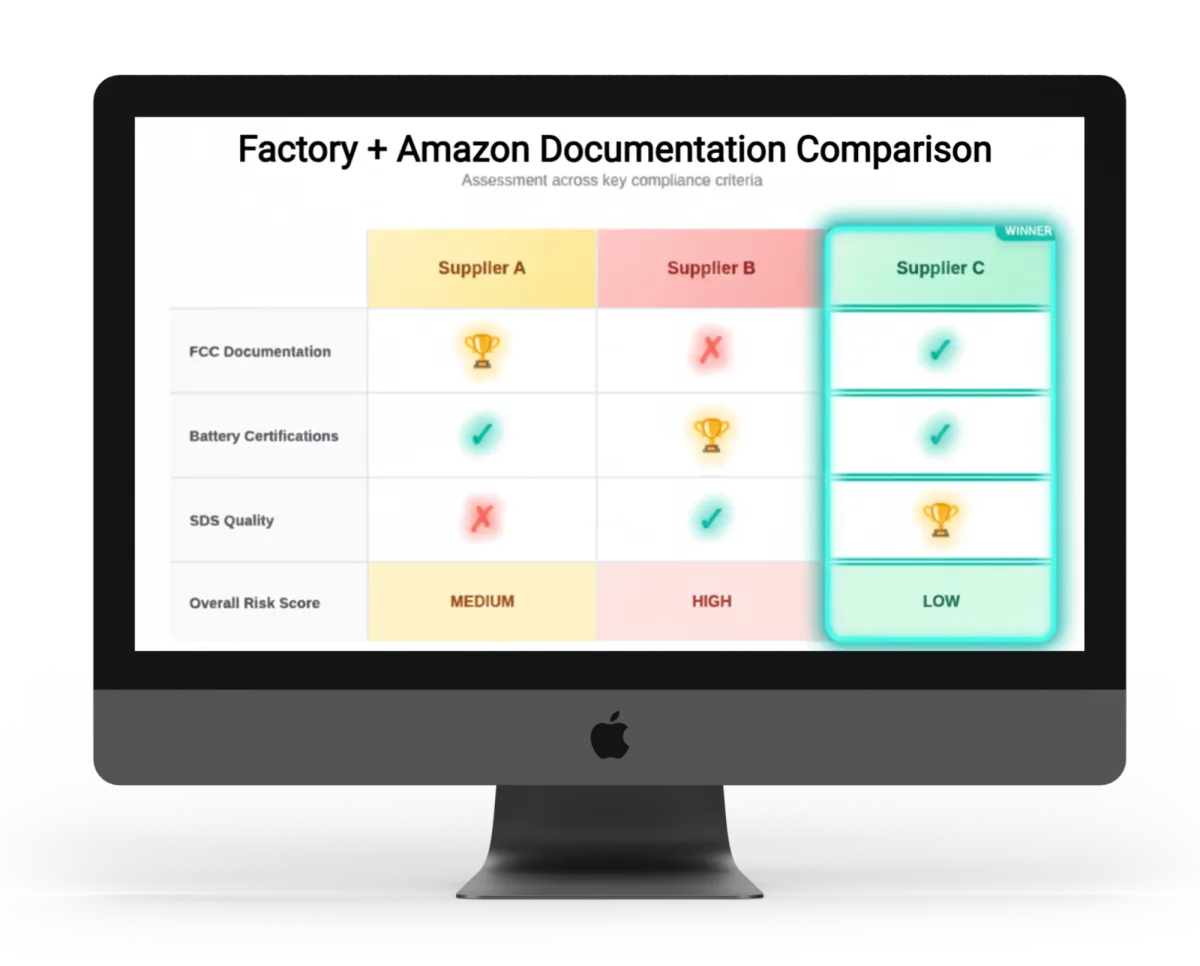 7-10 business days from receipt of complete manufacturer documentation. Timeline begins once we have all required docs from each supplier you're evaluating and deposit payment is confirmed. We provide a detailed documentation checklist upon engagement so you know exactly what to request from manufacturers.